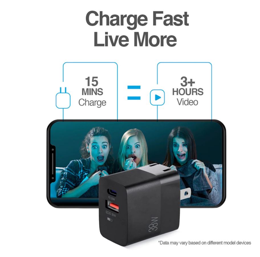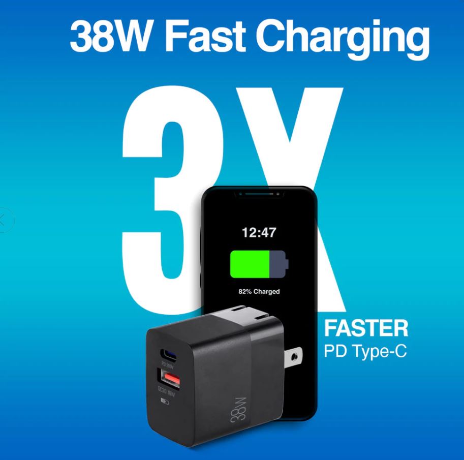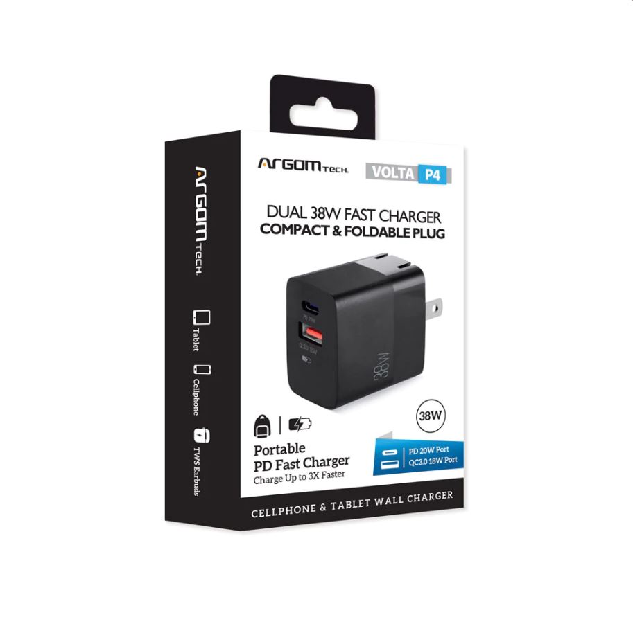 Cargador de pared Argom Tech Pro PD Tipo-C + USB de 38W ARG-AC-0122BK